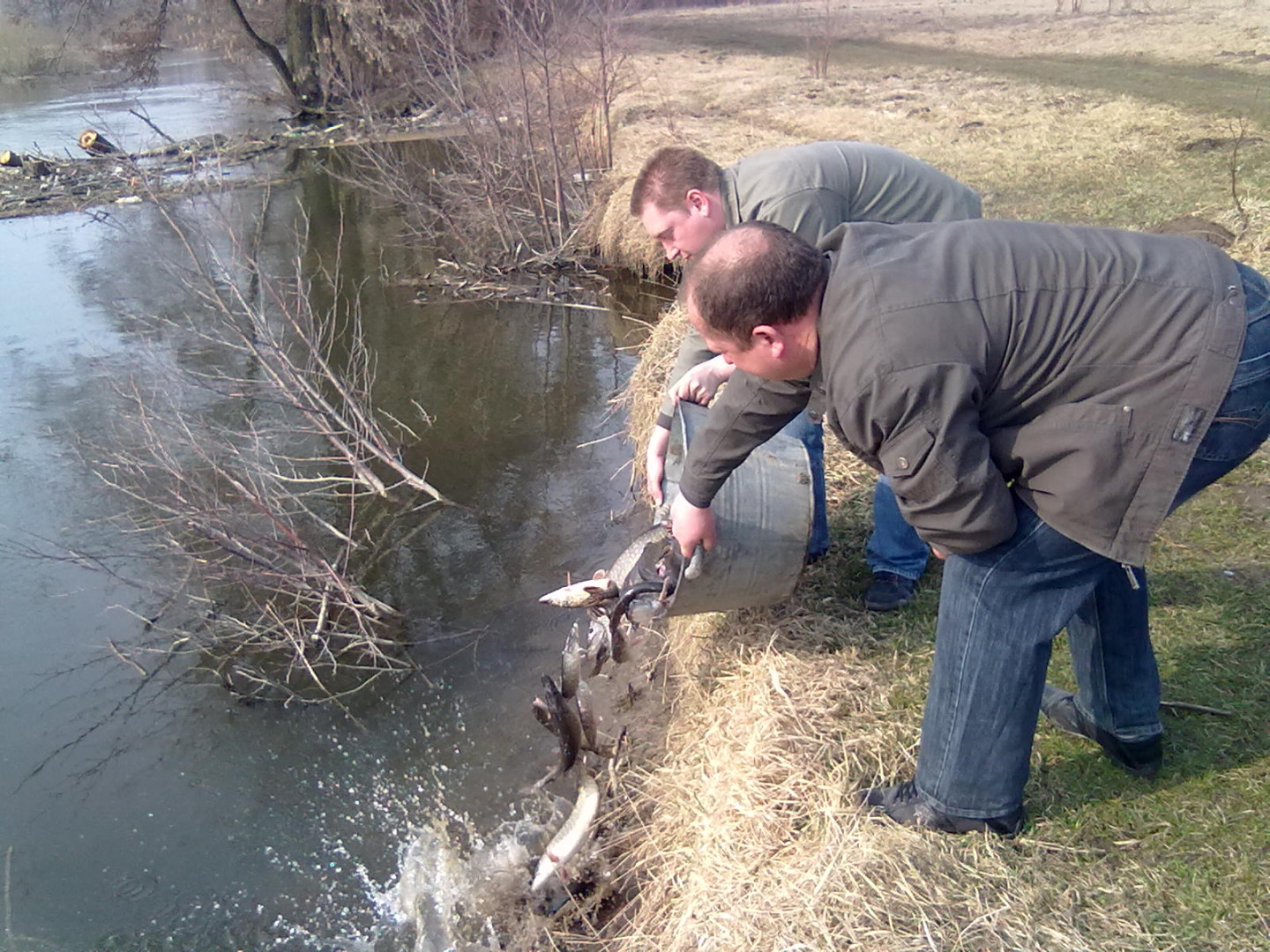 Rzeka Wieprz corocznie jest zarybiana różnymi gatunkami ryb tj. szczupakiem, sumem, jaziem, narybkiem klenia a nawet certą która do tej pory była nieznana na Wieprzu decyzją Zarządu Okręgu. Jesteśmy powiadamiani i członkowie zarządu koła biorą w tym udział wpuszczając narybek wraz z pracownikami, którzy przywożą narybek do nas gdzie decydujemy o miejscach na Wieprzu gdzie go wypuszczamy. Do galerii dołączam zdjęcie z tych czynności na przełomie wielu lat
